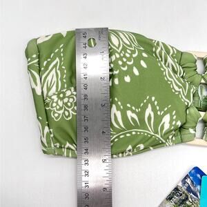 SEAFOLLY Bandeau Bra Bikini Top Women 6 Green Tea Floral Print Ring Details NEW