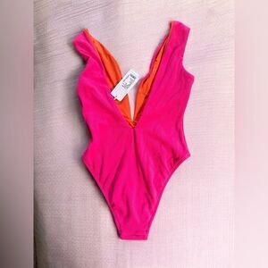 SEAFOLLY Coco Beach Terry Cap Sleeve V Wire One Piece Fuchsia Rose Size 8