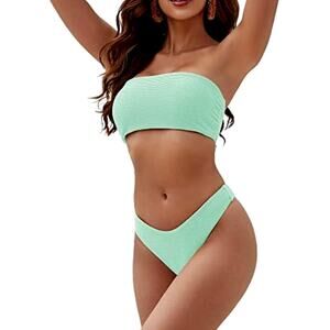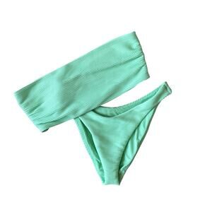 SEAFOLLY Ribbed Strapless Two Piece Bandeau Bikini Seafoam Green Womens Sz US 6