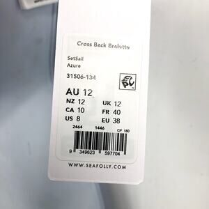 SEAFOLLY Women's Set Sail Cross Back Bralette Bikini Top Size 8 Blue Azure NWT