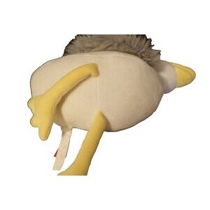 Make every day a beach day with this plush Seagull Macaroon. He is sweet and friendly and won't steal your food. His velvety textured microfiber fill adds to his soft, squeezable feel. His shaggy wings and tail make him so lovable, and he has a tuft of fluff upon his head. He has brightly yellow-colored legs and beak. You will just love this guy!! Take him on vacation. He is 10" tall not including his legs. He has plastic eyes. Recommended for ages 24 months and up!