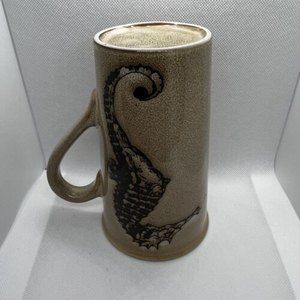 SEAHORSE Coffee Mug Cup Stoneware OCEAN Nautical Tall CAPPUCCINO 18 oz Brown