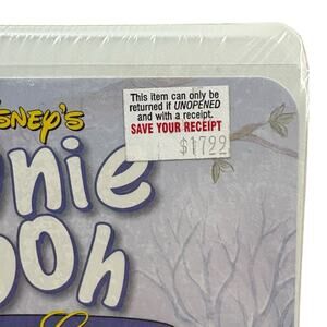 This vintage 1999 Disney "Winnie the Pooh: Seasons of Giving" Clamshell VHS has NEVER OPENED and FACTORY SEALED comes wrapped in its original shrink. There is minor cosmetic wear to the plastic film on the VHS. The plastic shrink film has no rips or tears and it has never been opened (see photos). There is an original vintage white sales sticker on the upper right-hand corner and a promotional sticker on the bottom left-hand corner of the front of the VHS (see photos).