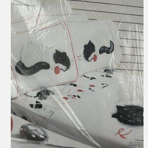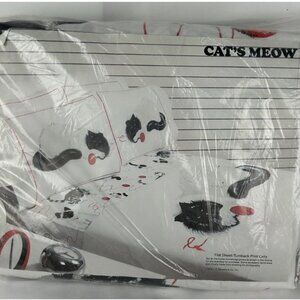 SEALED Vintage 70s Cats Meow Full Sheet Set Tastemaker Pillowcases Black White
