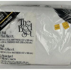 1 full flat sheet, 1 full fitted sheet, 2 standard pillowcases