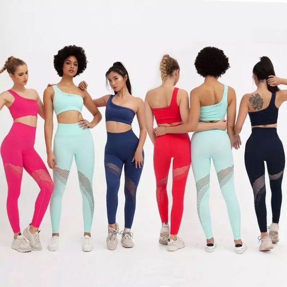 Seamless 2-piece set brand new, never worn, and can be worn as a single or double strap. Comfortable stretch with compression high-waist band to enhance figure.