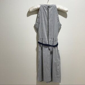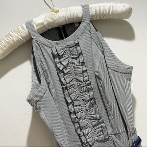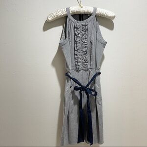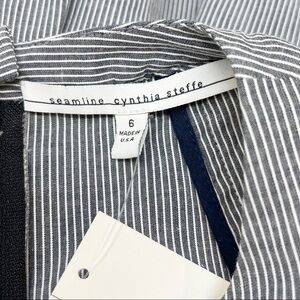 SEAMLINE CYNTHIA STEFFE Women’s Blue Stripe Ruffle Front Belted Dress Size 6. Pockets, exposed zipper, belted. New with tags. All measurements are approximate.