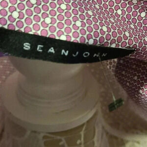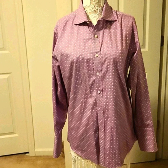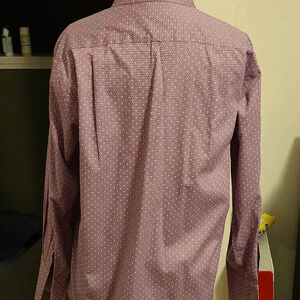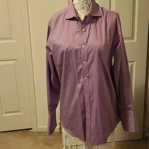 Sean John Dress Shirt with cuff link sleeves. The color is fusia/pink, white and black. The design is small circles. NWOT