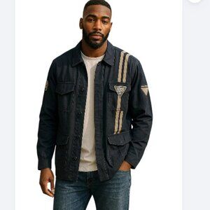 SEAN JOHN Navy Blue Full Zip Shirt Jacket Tiger Embroidered Men's Large