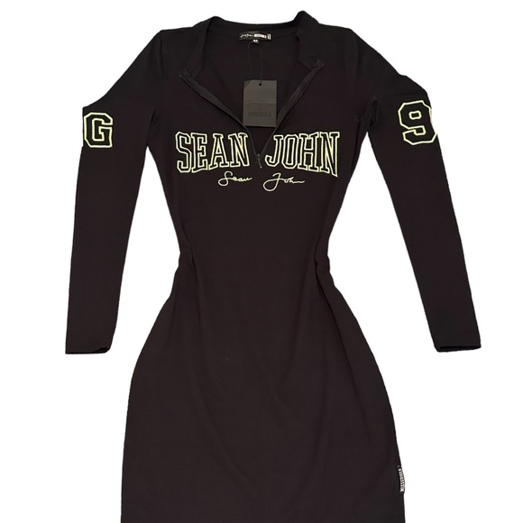 Details: -long sleeve black dress -lime green stitched writing -UK:10 | EUR:38 | US: 6 -stretchy -BRAND NEW with TAG
