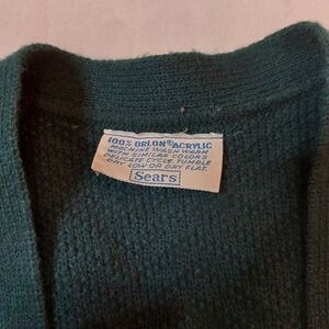 Sears Vintage Green Open Front Sweater Vest. Size Tag is missing. Measurements shown in photos. 100% Acrylic. 2 Front Pockets.