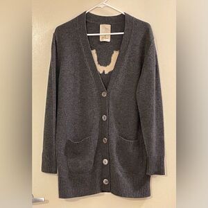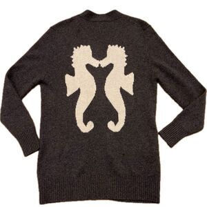 SEATON Cashmere Seahorse Varsity Cardigan in Gray and White