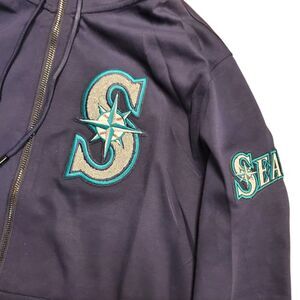 SEATTLE MARINERS Sweater Adult Large Blue Embroidered Full Zip Outdoor Hooded