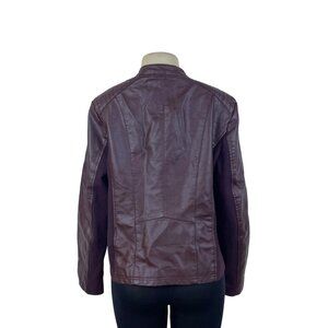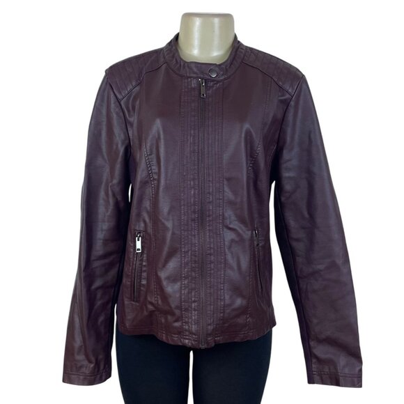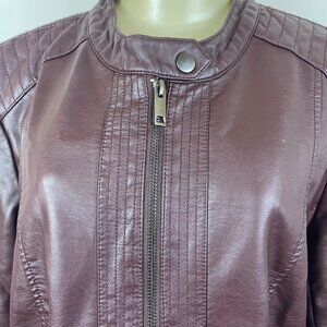 S.E.B. By Sebby Womens Burgundy Faux Leather Moto Jacket Full Zip Sz XL
