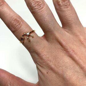 SECRET BOX Aquarius Constellation Ring 14K Gold Dipped CZ Adjustable