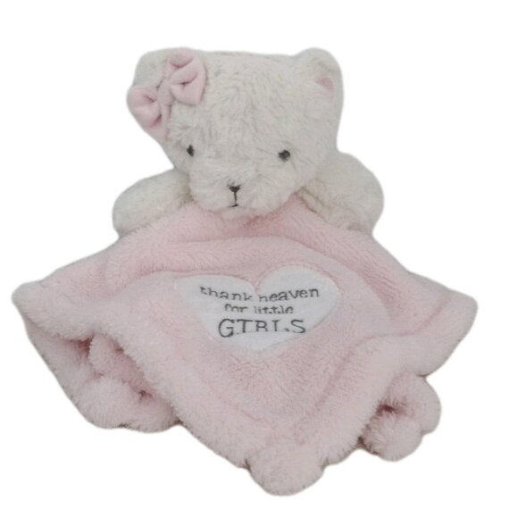 SECURITY Blanket BABY GEAR PINK White Teddy BEAR Heart LOVEY Plush Thank HEAVEN