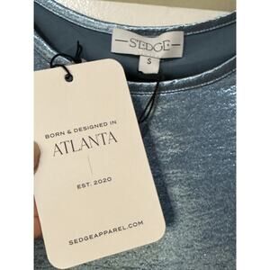 S'EDGE Easton Dress Metallic Blue Sateen Size Small NWT Tiered Short Sleeves