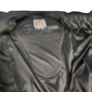 Euc. Has elbow, shoulder and back armour. This jacket is awesome! Durable riding jacket tailored for motorcycle enthusiasts. This olive green and black jacket features a full zip front for easy wear and removal, a sleek collar design for comfort, and ample protective padding in key areas. A Goldwing and Honda logo are present. The jacket is designed with a breathable mesh lining for ventilation, and includes adjustable features for a customized fit. Ideal for long distance touring, everyday commutes, or weekend rides, this jacket provides both style and safety on the road.