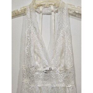 Seductive Wear by Cinema Etoile White Sheer Lace Halter Babydoll & Thong Set. Size Small