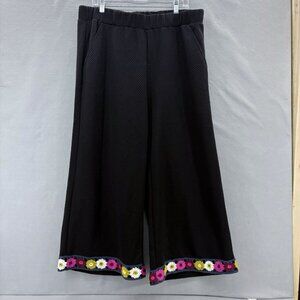 SEE AND BE SEEN Womens Black Textured 2 Piece Wide Leg Crochet Detail Boho SZ 2X