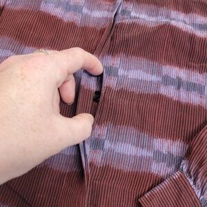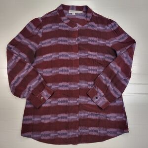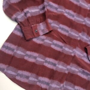 Maroon Purple geometric stripe hidden button down blouse shirt. Women's size 10. 100% silk. Slightly puffed shoulders.