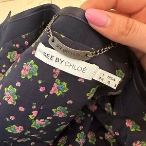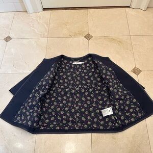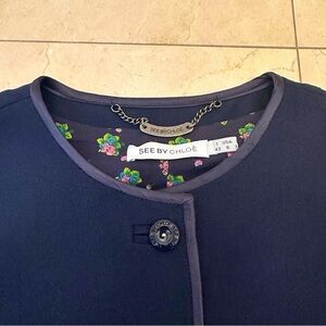 🆕 SEE BY CHLOÉ Navy Short Sleeve Cropped wool with floral lining Jacket size 6