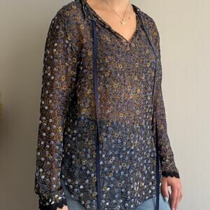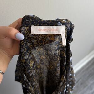 SEE BY CHLOÉ Silk Burnout Sheer Tie Neck Blouse