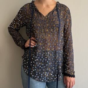 Tags: work; office; business; professional; polka dot; velvet; flower; floral; pattern; print; sheer; see through; long sleeve.