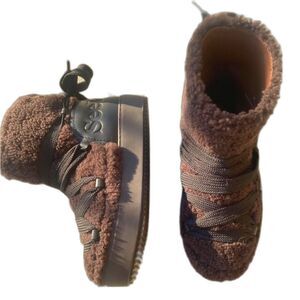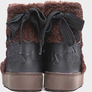 Features: Charlee snow boot in suede and smooth calfskin, with full shearling lining for the ultimate warm winter boot. Chunky criss-cross laces are fastened at the back in a decorative bow. Snow boot heel height: 1.2" (30 mm) platform - Upper: smooth calfskin & shearling - Sole: rubber Fit true to size - Snow boot - Laces tied at back - Full shearling lining (including footbed) - Large Chloé logo at ankle