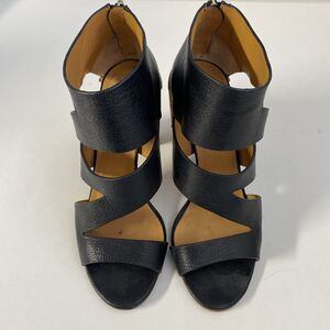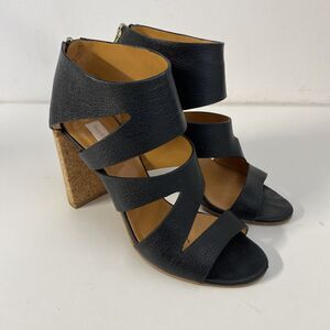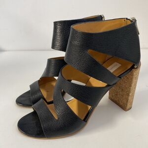 SEE BY CHLOE Dania Black Cork Heel Sandal Open Toe Strappy Caged 38.5 8.5