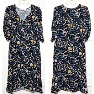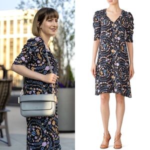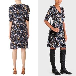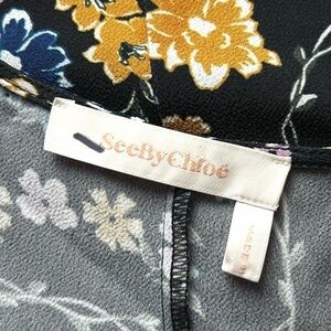 SEE BY CHLOE Floral Swirl Print Crepe Ruched Short Sleeve V-Neck Shift Dress M