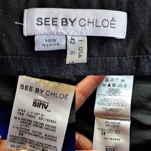 SEE BY CHLOE Jersey Black Dress Studded Abstract Design Cap Sleeves Shift 6 /42
