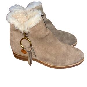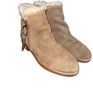 SEE BY CHLOE LOUISE LEATHER ZIP ON ANKLE BOOTS TAN 38/8