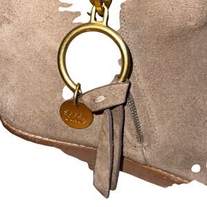 Ring hardware and tassel detail at closure