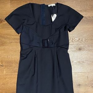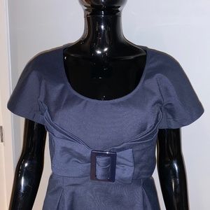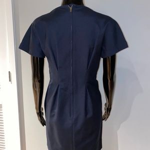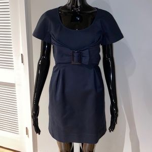SEE BY CHLOE NAVY BLUE RUCHED PLEATED FRONT BOW DETAILED DRESS 6 S M