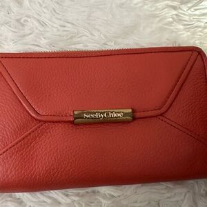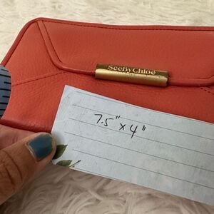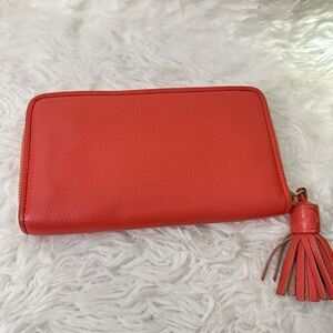 SEE BY CHLOE Peachy Orange Full Zip Leather Wallet with Tassel Pull