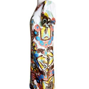SEE BY CHLOE Silk Dress Short Sleeves Abstract Floral Shift Ivory 70s 6 /42 EUC
