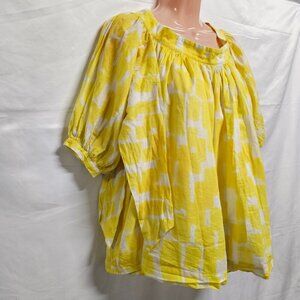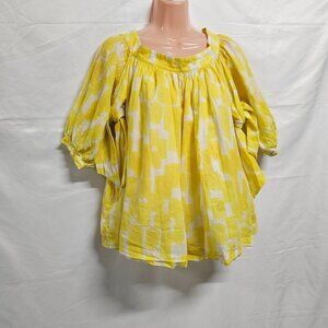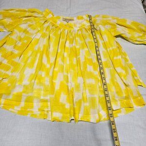 SEE BY CHLOE Yellow Printed Pleated Swing Blouse Women Size 2