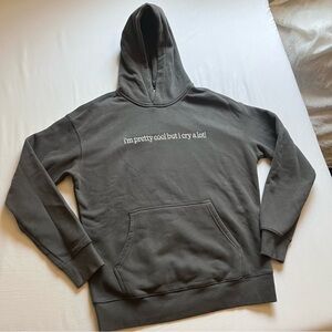 SEE THE WAY I SEE charcoal grey knit fleece sweater embroidered hoodie