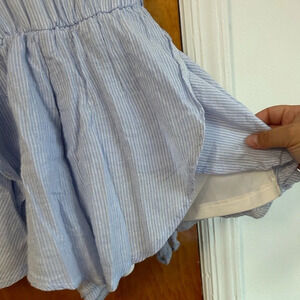 Pre owned overall great condition. Worn and washed a handful of times. Super cute cold arm little romper. Wrists tie. WOMENS size xs.