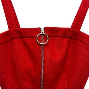 SEEK The Label Faux Suede Crop Top Red Front Zip Bustier Blouse Women's Size S