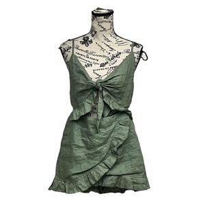 SEEK The Label Olive Green Ruffle Romper Beach Coastal Linen Festival S Boho