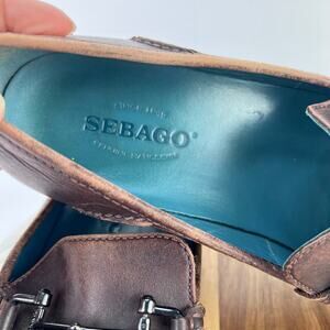 SEBAGO SUSSEX LINK DARK BROWN Leather Hand Sewn Horsebit Comfort Slip On Dress Loafers 9.5 M