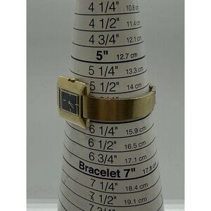 SEIKO 11-3479 Gold Tone Wind-up Analog Women's Square Watch Black Face Bracelet