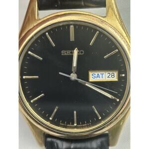 SEIKO 7N43-9946 Mens Rare Black Dial Quartz Watch New Battery Running Day Date