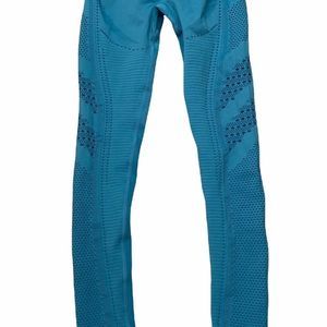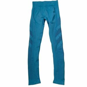 Sekermaet Womens Sz S Turquoise Leggings/Tights Textured High Waist Open Stitch