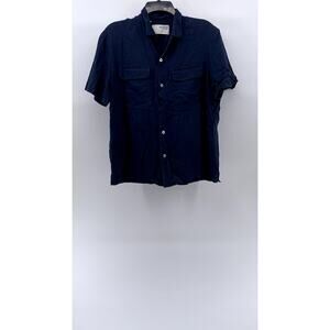 SELECTED HOMME Men's Dark Blue Regular-Fit Button-Up Short Sleeve Shirt SZ M