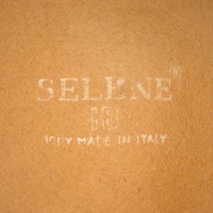 From Selene for high-end milliners, Leslie James, this lovely creation is made of fine fur felt and is very soft and lightweight, perfect for keeping you warm in style. Wide brim is furry on the underside, felt on the top. Rounded crown. Black grosgrain ribbon hatband with large bow. Inner hatband ribbon is hand-sewn. Brim is a bit creased and could use blocking if you want to wear it turned up. If you wear the brim turned down it works fine as is. Made in the late 50's to early 60's. Made in Italy.
