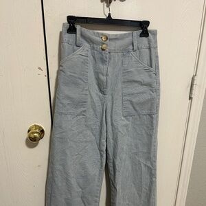 SELF CONTRAST BLUE AND WHITE PINSTRIPE FRONT POCKET WIDE LEG JEANS size Small