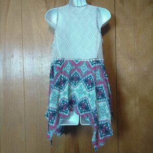 SELF ESTEEM Women's Small Boho Lace Multicolored Open Flowy Sleeveless V…